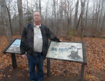 Richard Dusenbury standing by the Gregg Marker