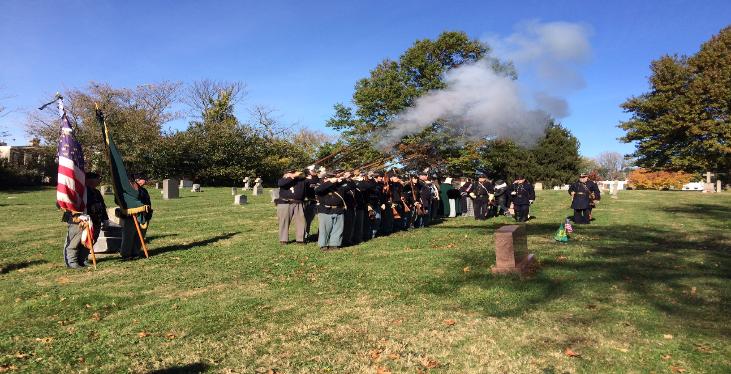 A large turnout of 69th Pa soldiers and ladies gathered at Old Cathedral Cemetery in