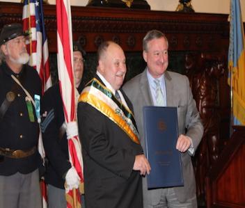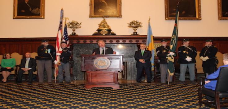 The Mayor reads the proclamation with the 69th Color Guard