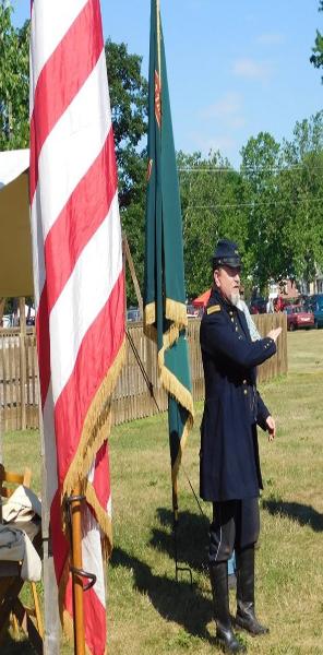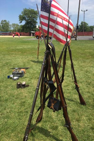 a small camp, information booth and stacked arms. At noon we marched to the town's