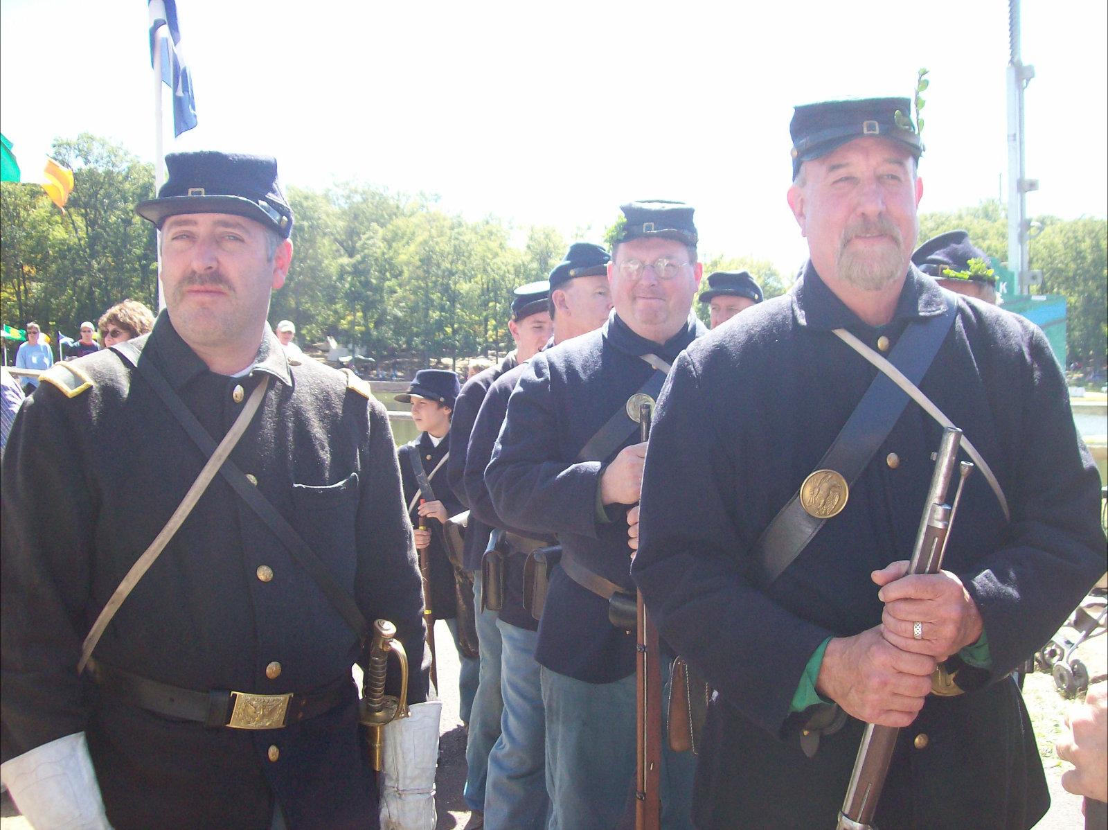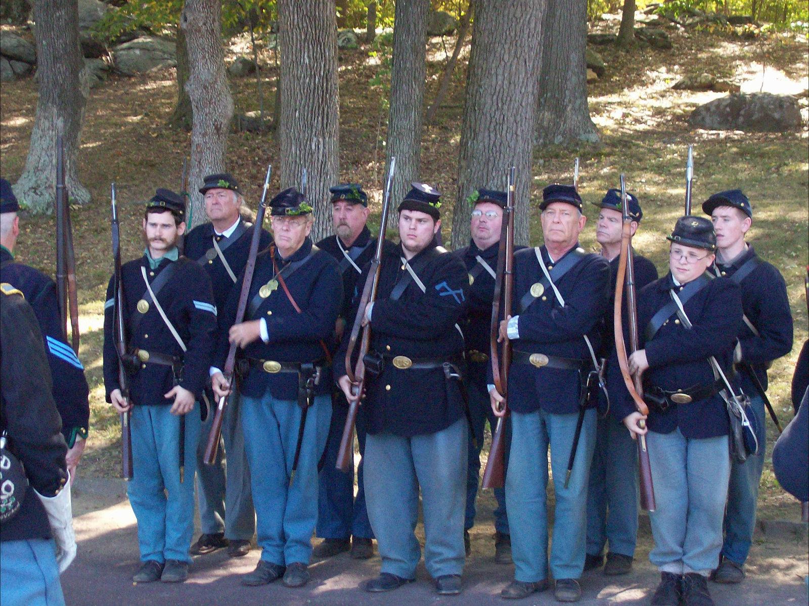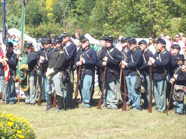 | Preparing for "manual of arms" drill for the spectators |