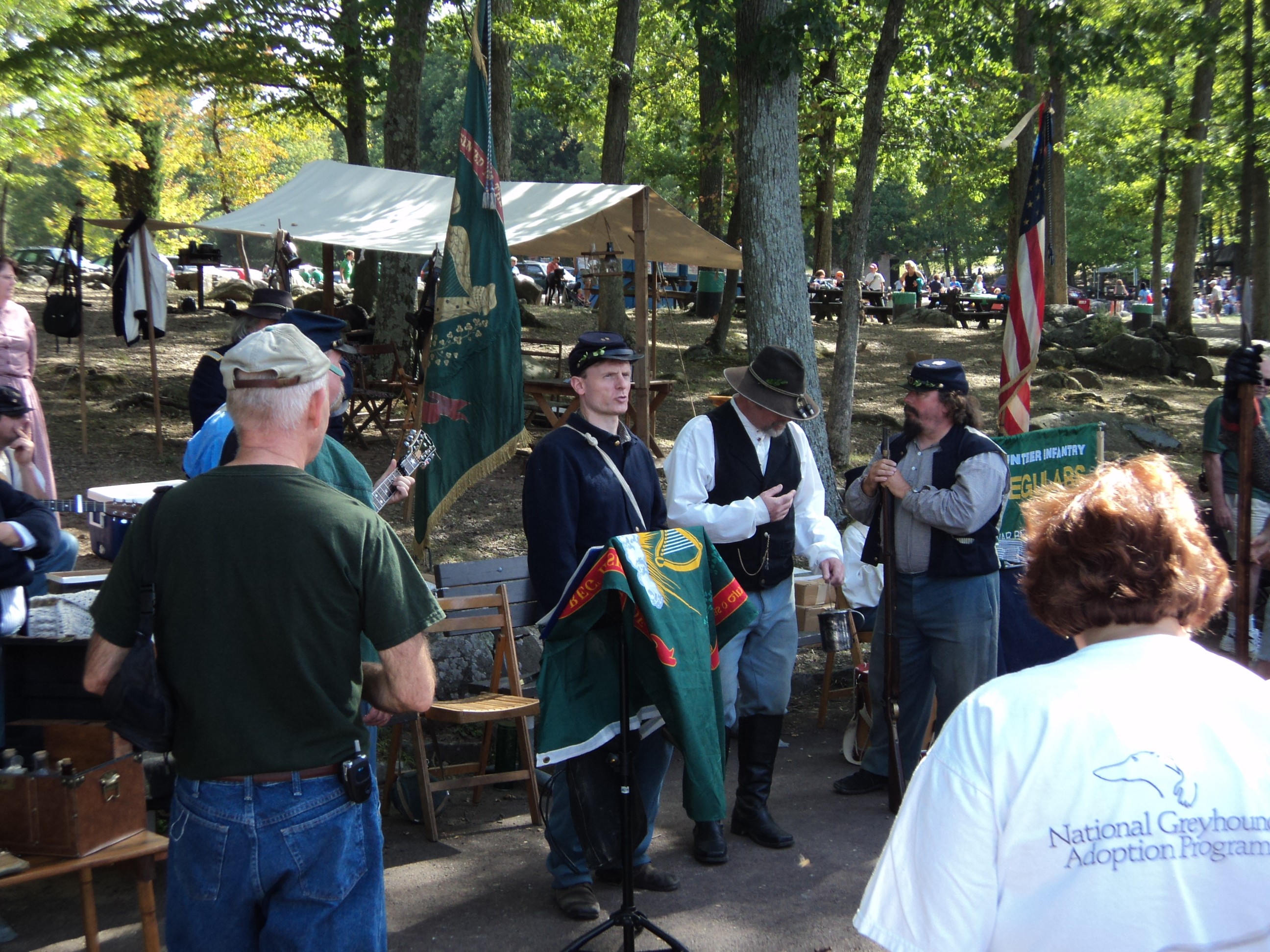 | Members of the 69th sit in the fly and sing for the visitors to the fest |