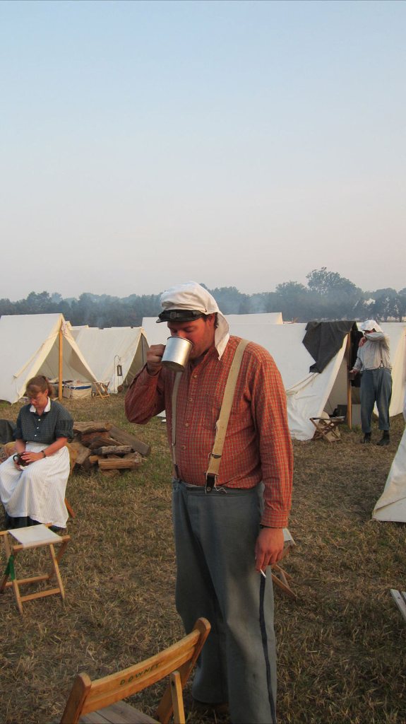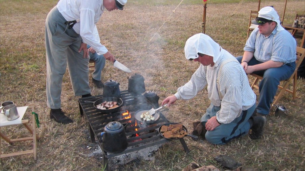 Bill Meehan and Don Ernsberger prepare the pork for breakfast before the battle