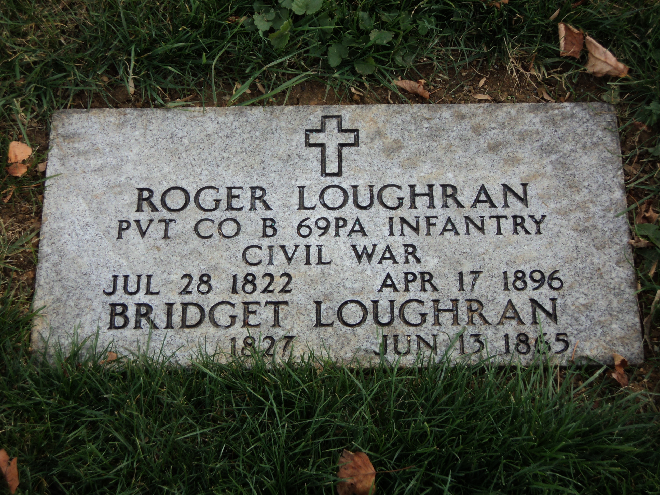| The new gravestone of Private Roger Laughran, company B 69th Pa. He was wounded at Antietam and Fredericksburg with no gravestone for 115 years |