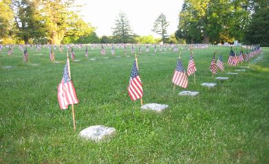 Irish flag placed alongside the American flag on each grave. Following the cemetery ceremony we