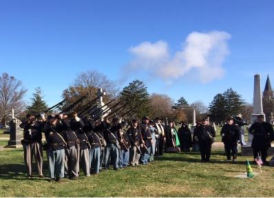 A large turnout of 69th Pa soldiers and ladies gathered at Old Cathedral Cemetery in