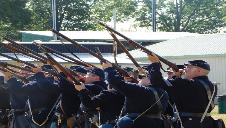 The lads fire a volley as they drill for the Quakertown Audience