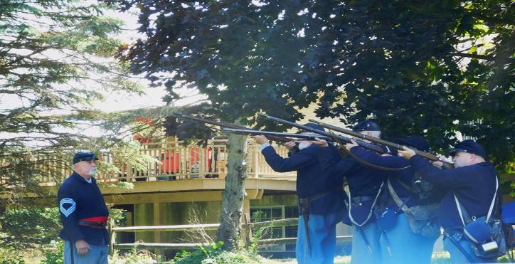 Sergeant Major O'Daniel leads the men in a volley fire