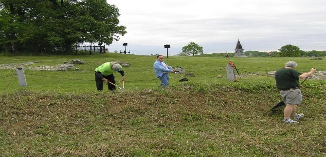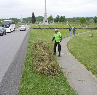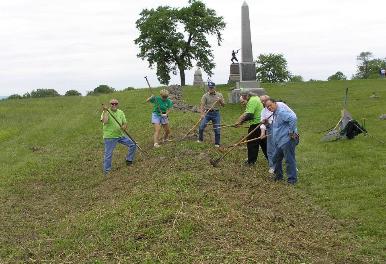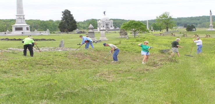 and cut weeds and rake vines at the stone wall defended by the regiment on July 3, 1863. With tens