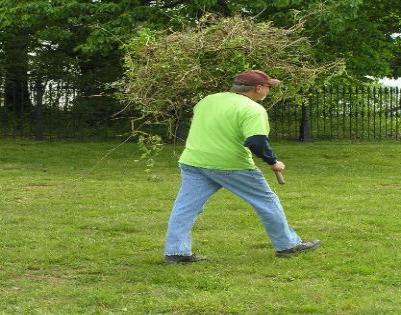 Piling up the debris - cutting and raking to make our wall ready for the 150th
