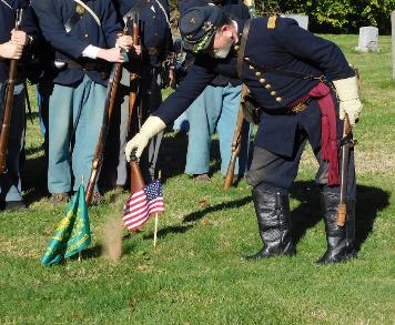Captain Eller places Irish Soil on the grave